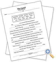 A cloze exercise is one in which certain words of a passage are removed and the student is required to put them back in the right place. This activity tests the student’s ability to understand the vocabulary and context. The words removed from the text are the vocabulary words from the reading.