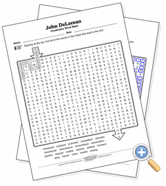 This is a word maze using the vocabulary words found in the article. Beginning from the top left, students must find the path that spells out all of the words. The maze winds its way around the grid until it reaches the bottom right exit, using the exact number of characters used byt he words. To make things harder, words can also appear in the maze backwards.