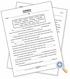 A cloze exercise is one in which certain words of a passage are removed and the student is required to put them back in the right place. This activity tests the student’s ability to understand the vocabulary and context. The words removed from the text are the vocabulary words from the reading.