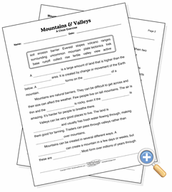 A cloze exercise is one in which certain words of a passage are removed and the student is required to put them back in the right place. This activity tests the student’s ability to understand the vocabulary and context. The words removed from the text are the vocabulary words from the reading.