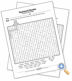 This is a word maze using the vocabulary words found in the article. Beginning from the top left, students must find the path that spells out all of the words. The maze winds its way around the grid until it reaches the bottom right exit, using the exact number of characters used byt he words. To make things harder, words can also appear in the maze backwards.