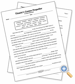 A cloze exercise is one in which certain words of a passage are removed and the student is required to put them back in the right place. This activity tests the student’s ability to understand the vocabulary and context. The words removed from the text are the vocabulary words from the reading.