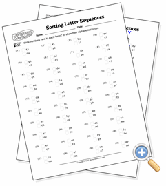 This is a kind of word sorting exercise with training wheels. After students can reliably identify the order of letters, they need to work with multi-letter words. In this case, they are given letter combinations commonly found at the beginning of English words and asked to identify the sort order. By adjusting the number of letters in each sequence and the number of sequences in each sorting problem, you can create sorting problems that are challenging to a wide range of student abilities.