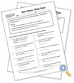Two common types of adjectives help to describe nouns by telling how many there are or what kind they are. This worksheet asks students to identify and tell the difference between the two.