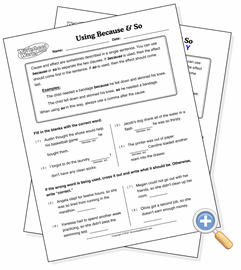 Cause and effect are sometimes described in a single sentence. You can use because or so to separate the two clauses. If because is used, then the effect should come first in the sentence. If so is used, then the effect should come last.