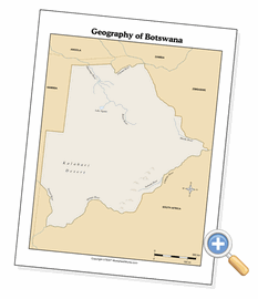 This page creates physical geography maps of Botswana. You can select from several presentation options, including the map’s context and legend options. Black and white is usually the best for black toner laser printers and photocopiers. This allows to you configure the way Botswana is presented so that you can use the map for exactly what you need it for - as a reference, a quiz or something for students to annotate while doing research.
