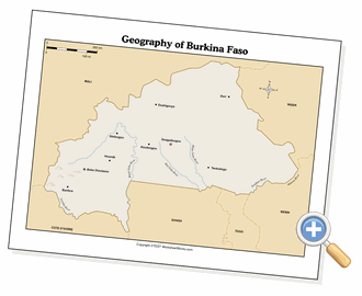 This page creates comprehensive geography maps of Burkina Faso. You can select from several presentation options, including the map’s context and legend options. Black and white is usually the best for black toner laser printers and photocopiers. This allows to you configure the way Burkina Faso is presented so that you can use the map for exactly what you need it for - as a reference, a quiz or something for students to annotate while doing research.