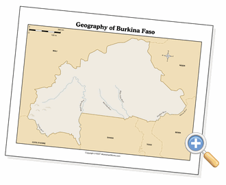 This page creates physical geography maps of Burkina Faso. You can select from several presentation options, including the map’s context and legend options. Black and white is usually the best for black toner laser printers and photocopiers. This allows to you configure the way Burkina Faso is presented so that you can use the map for exactly what you need it for - as a reference, a quiz or something for students to annotate while doing research.
