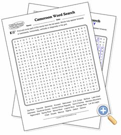 This page creates a word search puzzle using the locations from a map of Cameroon. Word searches are good tools for helping students memorize a list of locations and how they are spelled.