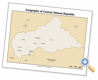 This page creates human geography maps of Central African Republic. You can select from several presentation options, including the map’s context and legend options. Black and white is usually the best for black toner laser printers and photocopiers. This allows to you configure the way Central African Republic is presented so that you can use the map for exactly what you need it for - as a reference, a quiz or something for students to annotate while doing research.