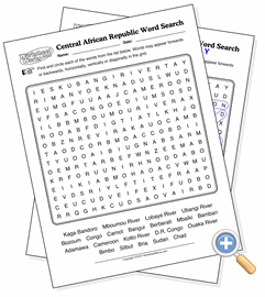 This page creates a word search puzzle using the locations from a map of Central African Republic. Word searches are good tools for helping students memorize a list of locations and how they are spelled.