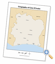 This page creates human geography maps of Cote D'Ivoire. You can select from several presentation options, including the map’s context and legend options. Black and white is usually the best for black toner laser printers and photocopiers. This allows to you configure the way Cote D'Ivoire is presented so that you can use the map for exactly what you need it for - as a reference, a quiz or something for students to annotate while doing research.