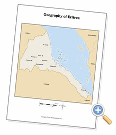 This page creates human geography maps of Eritrea. You can select from several presentation options, including the map’s context and legend options. Black and white is usually the best for black toner laser printers and photocopiers. This allows to you configure the way Eritrea is presented so that you can use the map for exactly what you need it for - as a reference, a quiz or something for students to annotate while doing research.