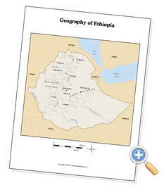 This page creates comprehensive geography maps of Ethiopia. You can select from several presentation options, including the map’s context and legend options. Black and white is usually the best for black toner laser printers and photocopiers. This allows to you configure the way Ethiopia is presented so that you can use the map for exactly what you need it for - as a reference, a quiz or something for students to annotate while doing research.