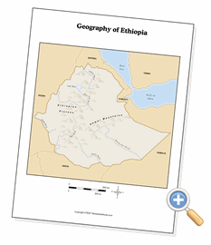 This page creates physical geography maps of Ethiopia. You can select from several presentation options, including the map’s context and legend options. Black and white is usually the best for black toner laser printers and photocopiers. This allows to you configure the way Ethiopia is presented so that you can use the map for exactly what you need it for - as a reference, a quiz or something for students to annotate while doing research.