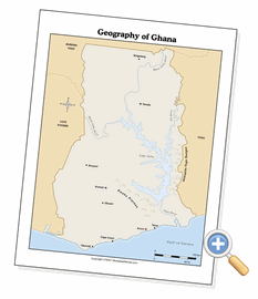 This page creates comprehensive geography maps of Ghana. You can select from several presentation options, including the map’s context and legend options. Black and white is usually the best for black toner laser printers and photocopiers. This allows to you configure the way Ghana is presented so that you can use the map for exactly what you need it for - as a reference, a quiz or something for students to annotate while doing research.