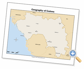 This page creates human geography maps of Guinea. You can select from several presentation options, including the map’s context and legend options. Black and white is usually the best for black toner laser printers and photocopiers. This allows to you configure the way Guinea is presented so that you can use the map for exactly what you need it for - as a reference, a quiz or something for students to annotate while doing research.