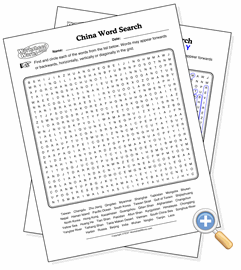 This page creates a word search puzzle using the locations from a map of China. Word searches are good tools for helping students memorize a list of locations and how they are spelled.