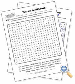This page creates a word search puzzle using the locations from a map of Vietnam. Word searches are good tools for helping students memorize a list of locations and how they are spelled.