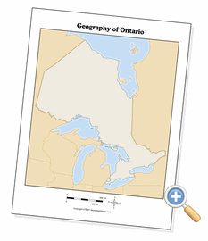 This page creates outline maps of Ontario. You can select from several presentation options, including the map’s context and legend options. Black and white is usually the best for black toner laser printers and photocopiers. This allows to you configure the way Ontario is presented so that you can use the map for exactly what you need it for - as a reference, a quiz or something for students to annotate while doing research.