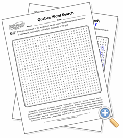 This page creates a word search puzzle using the locations from a map of Quebec. Word searches are good tools for helping students memorize a list of locations and how they are spelled.