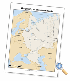 This page creates comprehensive geography maps of European Russia. You can select from several presentation options, including the map’s context and legend options. Black and white is usually the best for black toner laser printers and photocopiers. This allows to you configure the way European Russia is presented so that you can use the map for exactly what you need it for - as a reference, a quiz or something for students to annotate while doing research.