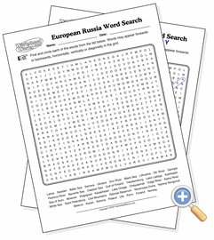 This page creates a word search puzzle using the locations from a map of European Russia. Word searches are good tools for helping students memorize a list of locations and how they are spelled.