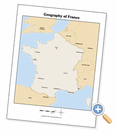 This page creates human geography maps of France. You can select from several presentation options, including the map’s context and legend options. Black and white is usually the best for black toner laser printers and photocopiers. This allows to you configure the way France is presented so that you can use the map for exactly what you need it for - as a reference, a quiz or something for students to annotate while doing research.