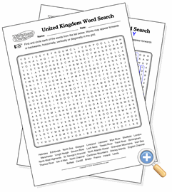 This page creates a word search puzzle using the locations from a map of United Kingdom. Word searches are good tools for helping students memorize a list of locations and how they are spelled.