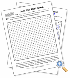 This page creates a word search puzzle using the locations from a map of Costa Rica. Word searches are good tools for helping students memorize a list of locations and how they are spelled.