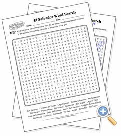 This page creates a word search puzzle using the locations from a map of El Salvador. Word searches are good tools for helping students memorize a list of locations and how they are spelled.