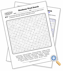 This page creates a word search puzzle using the locations from a map of Honduras. Word searches are good tools for helping students memorize a list of locations and how they are spelled.