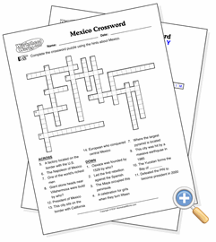 This page creates a classroom-style crossword puzzle using facts about Mexico. We’ve grouped the hints into five categories from which you can choose. The puzzle will only use enough hints to fill the page, so not all of the available hints will be used. This means that you can make a new puzzle and it will be created with another group of hints.