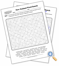 This page creates a word search puzzle using the locations from a map of New Zealand. Word searches are good tools for helping students memorize a list of locations and how they are spelled.