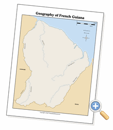 This page creates physical geography maps of French Guiana. You can select from several presentation options, including the map’s context and legend options. Black and white is usually the best for black toner laser printers and photocopiers. This allows to you configure the way French Guiana is presented so that you can use the map for exactly what you need it for - as a reference, a quiz or something for students to annotate while doing research.