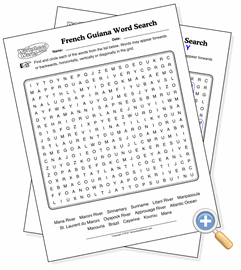 This page creates a word search puzzle using the locations from a map of French Guiana. Word searches are good tools for helping students memorize a list of locations and how they are spelled.