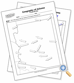 This page creates human geography maps of Arizona. You can select from several presentation options, including the map’s context and legend options. Black and white is usually the best for black toner laser printers and photocopiers. This allows to you configure the way Arizona is presented so that you can use the map for exactly what you need it for - as a reference, a quiz or something for students to annotate while doing research.