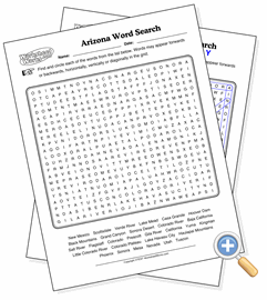 This page creates a word search puzzle using the locations from a map of Arizona. Word searches are good tools for helping students memorize a list of locations and how they are spelled.