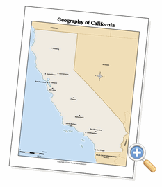 This page creates human geography maps of California. You can select from several presentation options, including the map’s context and legend options. Black and white is usually the best for black toner laser printers and photocopiers. This allows to you configure the way California is presented so that you can use the map for exactly what you need it for - as a reference, a quiz or something for students to annotate while doing research.
