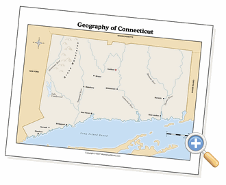 This page creates comprehensive geography maps of Connecticut. You can select from several presentation options, including the map’s context and legend options. Black and white is usually the best for black toner laser printers and photocopiers. This allows to you configure the way Connecticut is presented so that you can use the map for exactly what you need it for - as a reference, a quiz or something for students to annotate while doing research.