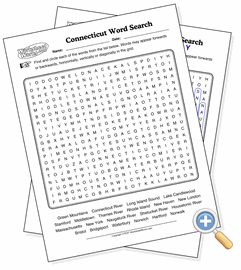 This page creates a word search puzzle using the locations from a map of Connecticut. Word searches are good tools for helping students memorize a list of locations and how they are spelled.