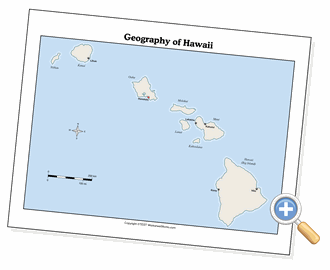 This page creates human geography maps of Hawaii. You can select from several presentation options, including the map’s context and legend options. Black and white is usually the best for black toner laser printers and photocopiers. This allows to you configure the way Hawaii is presented so that you can use the map for exactly what you need it for - as a reference, a quiz or something for students to annotate while doing research.