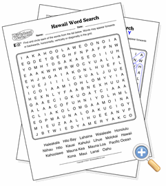 This page creates a word search puzzle using the locations from a map of Hawaii. Word searches are good tools for helping students memorize a list of locations and how they are spelled.