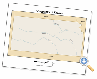 This page creates physical geography maps of Kansas. You can select from several presentation options, including the map’s context and legend options. Black and white is usually the best for black toner laser printers and photocopiers. This allows to you configure the way Kansas is presented so that you can use the map for exactly what you need it for - as a reference, a quiz or something for students to annotate while doing research.
