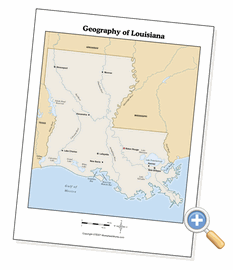 This page creates comprehensive geography maps of Louisiana. You can select from several presentation options, including the map’s context and legend options. Black and white is usually the best for black toner laser printers and photocopiers. This allows to you configure the way Louisiana is presented so that you can use the map for exactly what you need it for - as a reference, a quiz or something for students to annotate while doing research.