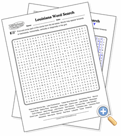 This page creates a word search puzzle using the locations from a map of Louisiana. Word searches are good tools for helping students memorize a list of locations and how they are spelled.