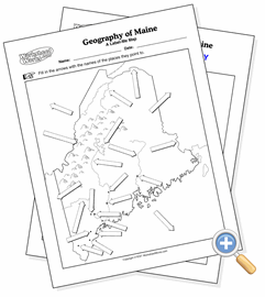 This page creates comprehensive geography maps of Maine. You can select from several presentation options, including the map’s context and legend options. Black and white is usually the best for black toner laser printers and photocopiers. This allows to you configure the way Maine is presented so that you can use the map for exactly what you need it for - as a reference, a quiz or something for students to annotate while doing research.