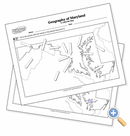 This page creates human geography maps of Maryland. You can select from several presentation options, including the map’s context and legend options. Black and white is usually the best for black toner laser printers and photocopiers. This allows to you configure the way Maryland is presented so that you can use the map for exactly what you need it for - as a reference, a quiz or something for students to annotate while doing research.