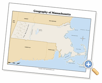 This page creates physical geography maps of Massachusetts. You can select from several presentation options, including the map’s context and legend options. Black and white is usually the best for black toner laser printers and photocopiers. This allows to you configure the way Massachusetts is presented so that you can use the map for exactly what you need it for - as a reference, a quiz or something for students to annotate while doing research.