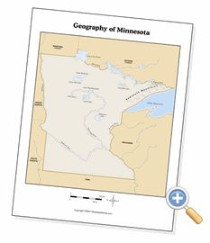 This page creates physical geography maps of Minnesota. You can select from several presentation options, including the map’s context and legend options. Black and white is usually the best for black toner laser printers and photocopiers. This allows to you configure the way Minnesota is presented so that you can use the map for exactly what you need it for - as a reference, a quiz or something for students to annotate while doing research.